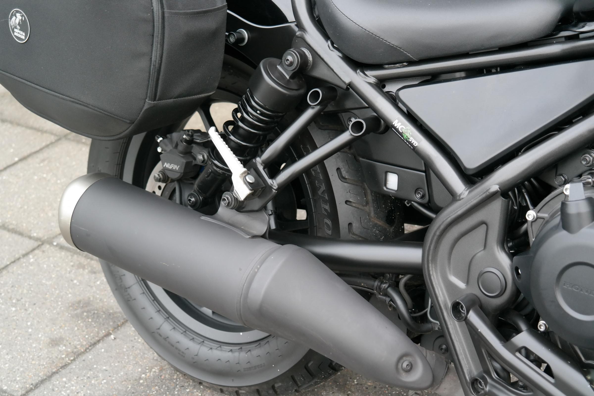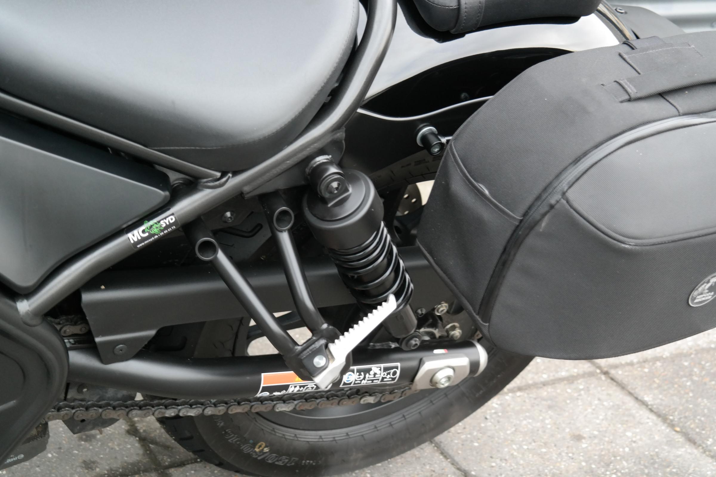 redesignet 2-1-lyddæmper med ‘shotgun’-udformning motoren EURO5- standarden, mens en slipper-kobling gør gearskift nemmere med mindre bevægelse i gearpedalen. Tilgængelig og nem at håndtere: Rebel har en lav sædehøjde og afslappet kørestilling med let udstrakte arme og fodhvilere i medium højde samt et nyt, bekvemt sædedesign. Nye affjedringsindstillinger for og bag strammer kørslen op, og støddæmperen er nitrogenfyldt for ekstra kontrol. ABS bremser, varmehåndtag, gearindikator, vindskærm, sidetasker