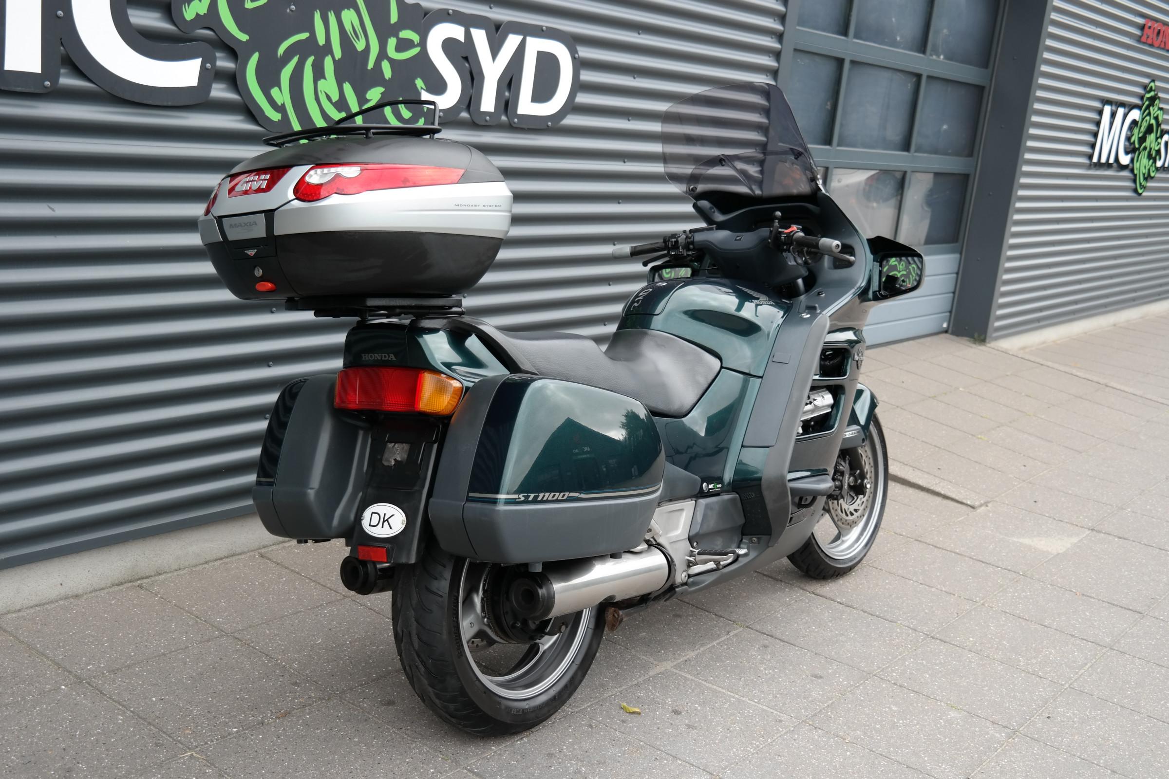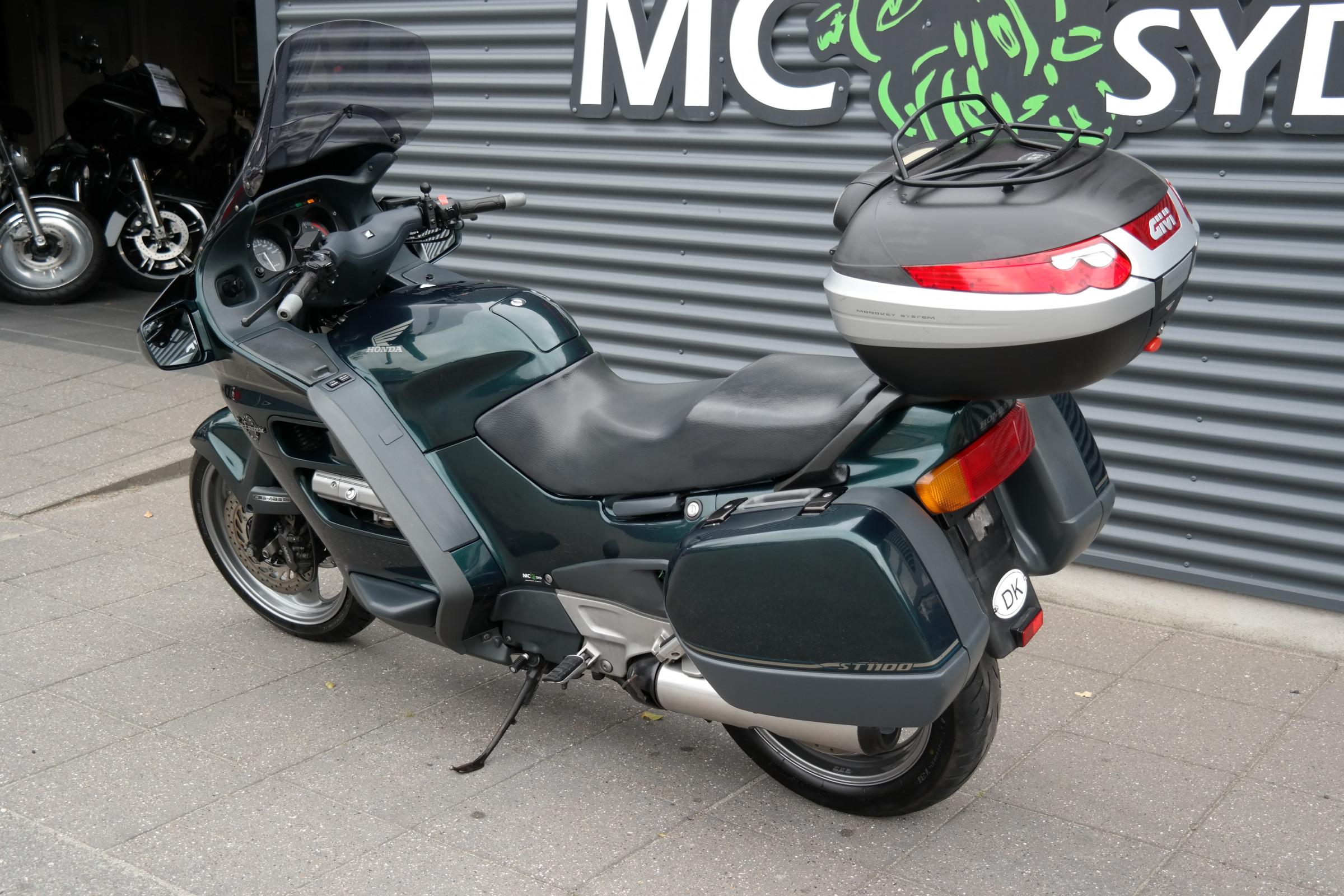 Touring, 1100 ccm, Farve: Grønmetal, Registreret første gang: 6/1998, Sidste syn: 6/2015, Meget velholdt ST 1100 med ABS bremser. her er mulighed for at få fingrene i en af de sidste årgange 1100 Pan European. som oven i købet står i utrolig flot stand. Husk vi bytter meget gerne. Vi hjælper også gerne med en god og billig finansiering, Både med og uden udbetaling. Husk vi har Sydjyllands største udvalg i nye/brugte motorcykler altid i nærheden af 500stk. på lager., ABS bremser, TCS (traction control), fuldkåbe, sidetasker, topboks